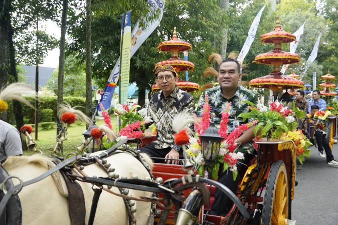 Menteri Kebudayaan Fadli Zon, naik dokar bersama Bupati Blora Arief Rohman menuju gedung Blora Creative Space (bekas Gedung Nasional Indonesia/GNI Blora) untuk meresmikan pameran patung dan sketsa bertajuk “Interpretasi Se-Abad Pramudya dalam Ekspresi Rupa Wajah dan Patung”.